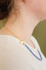 This necklace — with its deep blue beads, golden chain, and celestial pendant showing moon phases — has a cosmic yet grounded energy. It balances modern minimalism with a touch of mystical symbolism.